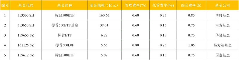 综合规模和费率来看,标普500ETF基金(513650)最佳,规模排第二,但费率是最低的。