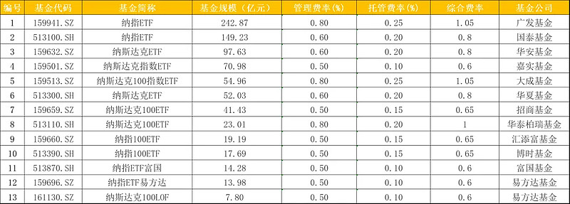 从综合费率和规模的角度来说,我认为纳斯达克指数指数ETF(159501)最佳,规模较大,费率最低。