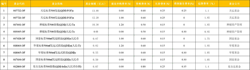 规模大于1亿元的只有四个,所以对于标普500来说,我们可选择的场外基金较少。