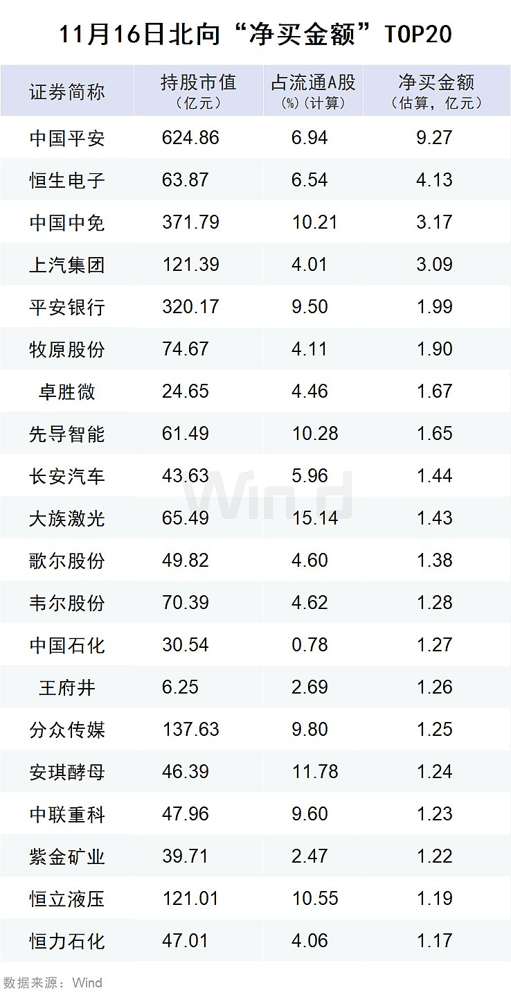香港万得通讯社报道,根据港交所公布的最新2142只沪深港通标的持股情况,11月16日,北向资金买入475.4亿元,卖出449.5亿元,总体净买入25.9亿元。截至当日收盘,北向资金总持仓市值约20784.5亿元。
