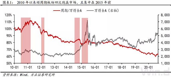 近10年来低估值顺周期板块一共出现过的四次明显超额收益,全部集中在2015年前。但2015年后,周期风格不再出现持续的超额收益,即便强如2016年至2017年供给侧结构性改革的逻辑,也仅表现为跟随全市场的修复性上涨,并未获得持续的超额收益。