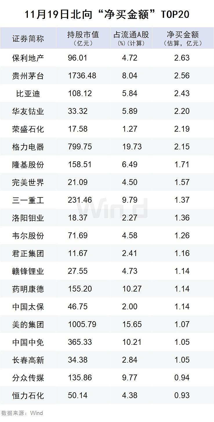 香港万得通讯社报道,根据港交所公布的最新2142只沪深港通标的持股情况,11月19日,北向资金买入431.9亿元,卖出427.5亿元,总体净买入4.38亿元。截至当日收盘,北向资金总持仓市值约20777.7亿元。