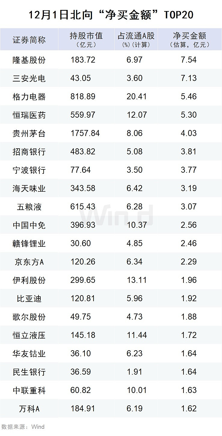 12月1日,A股一开盘,北向资金即一路净买入,收盘时达到当日净买最大值。