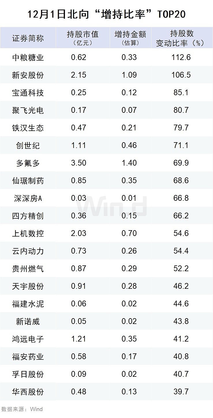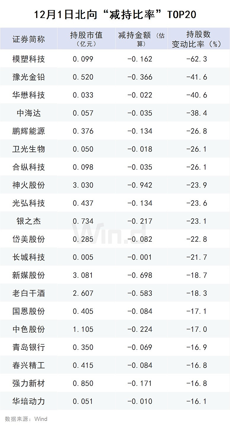 也就是说,12月1日北向资金的交易情况,表现出来的是加仓+锁仓,11月30日,则更多是大买、大卖,调仓的特性更加突出。