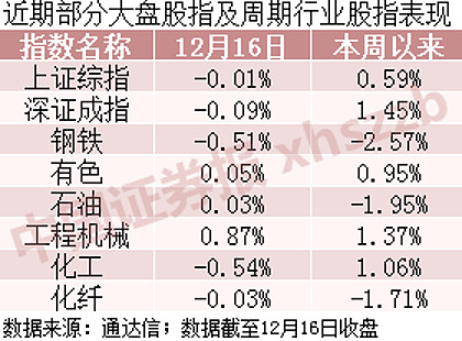 受主要股指持续震荡趋稳等因素推动,今天(12月16日)两市多个周期行业板块小幅收红。通达信数据显示,截至今天收盘,两市合计56个行业板块指数中,共有17个行业板块指数实现上涨,其中工程机械、运输服务、电力、有色、石油等周期行业板块指数涨幅居前。