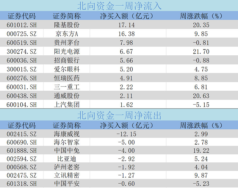 近一周以来,有色金属、光伏是北向资金主力加仓的两大板块,这两大热点也贯穿了四季度的反弹行情。12月21~25日的这周,北向资金净流入前五的行业分别为电气设备、电子、医药生物、机械设备、有色金属,其中有色金属连续几周上榜;净流入前五大个股则为隆基股份、京东方A、贵州茅台、阳光电源、招商银行,其中两股皆为光伏概念。