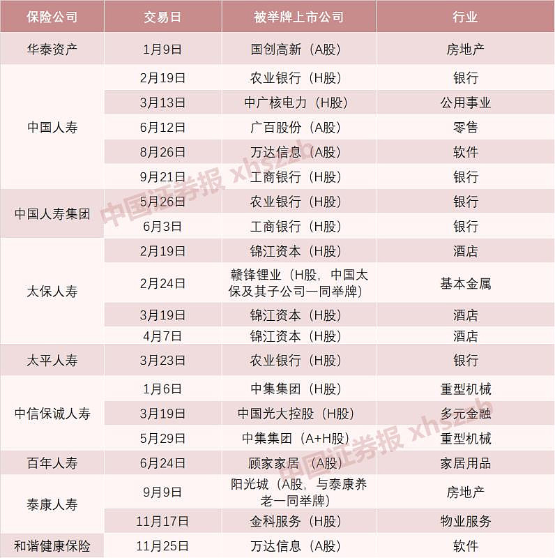 从被举牌上市公司来看,共有13只股票被举牌,H股、A股上市公司均有涉及,不过,H股较A股更受险资青睐。“举牌的成本是险资考虑的重点,H股频遭举牌可能与H股估值较低有关。同时,险资举牌A股的方式,并非在二级市场买入,而是主要通过协议转让或定增的形式,可降低买入的成本,同时也降低了因举牌而带来的股价波动。”华西证券分析师魏涛表示。