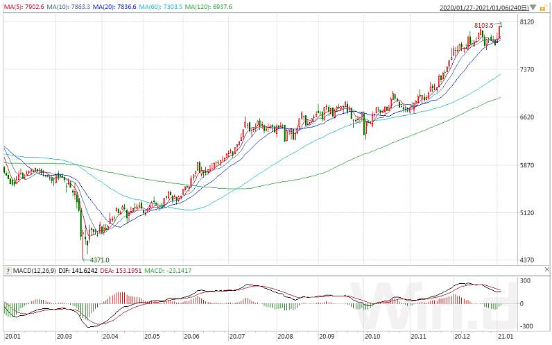 数据方面,美国2020年12月的ISM制造业PMI60.7,创下两年多的新高。数据连续七个月处于50以上,美国经济持续修复。