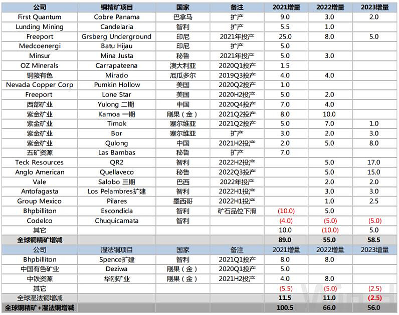 展望2021年,全球铜矿供应将从疫情影响中恢复,加之项目扩产和绿地项目投产,铜矿产量有望明显提升。