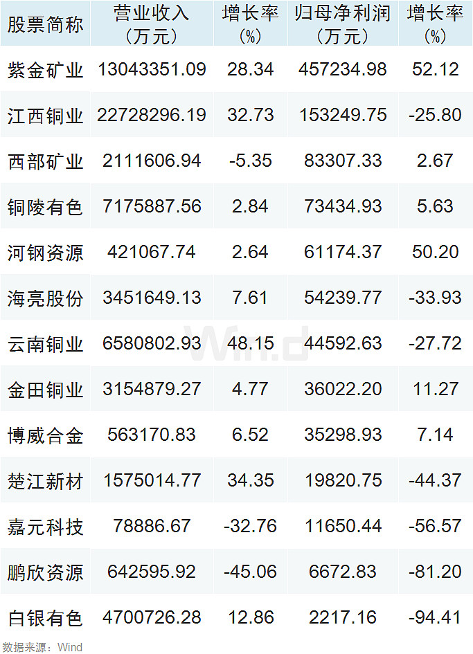 A股铜公司情况分析