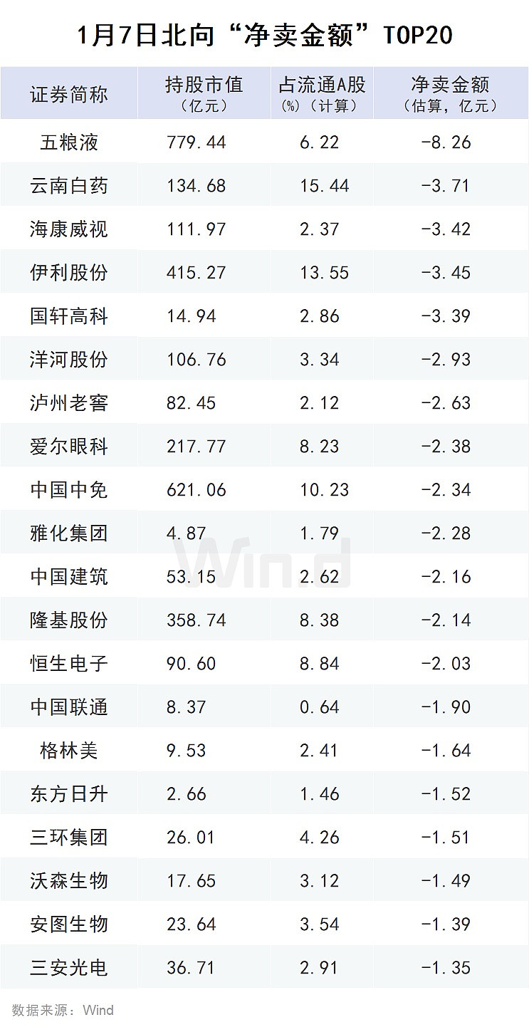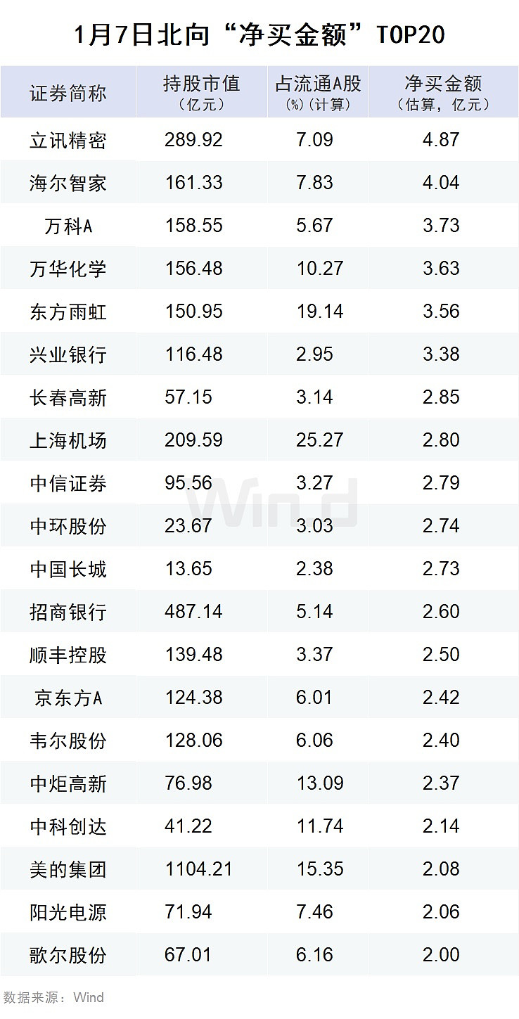 香港万得通讯社报道,根据港交所公布的最新2218只沪深港通标的持股情况, 1月7日,北向资金买入715.6亿元,卖出682.9亿元,总体净买入32.6亿元。截至当日收盘,北向资金总持仓市值约24878.8亿