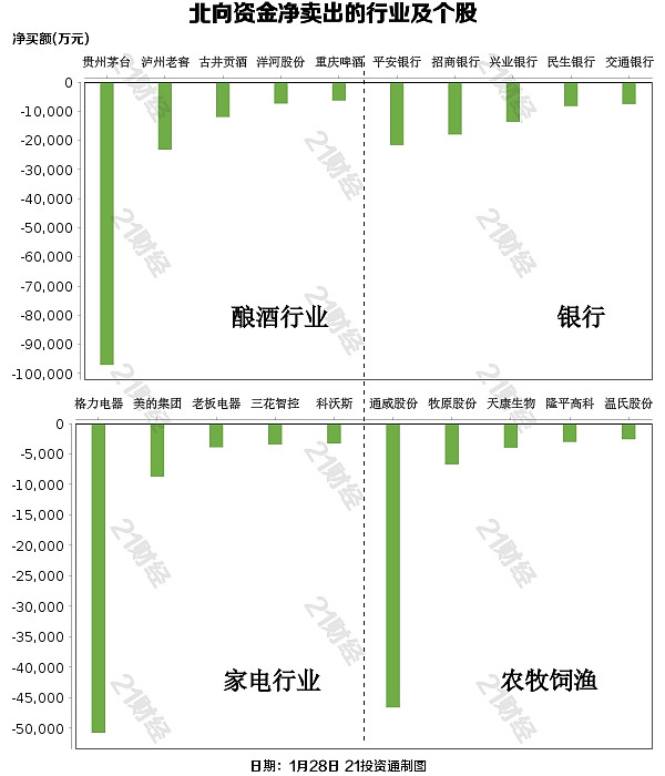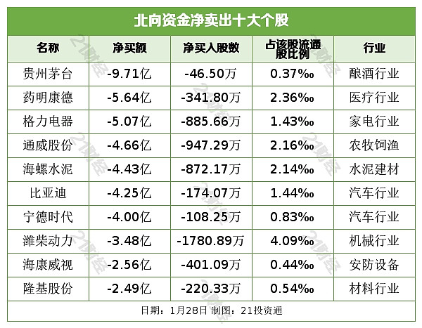 据21投资通智能监测,1月28日,北向资金净卖出64.05亿元,其中沪股通净卖出36.6亿元,深股通净卖出27.44亿元。