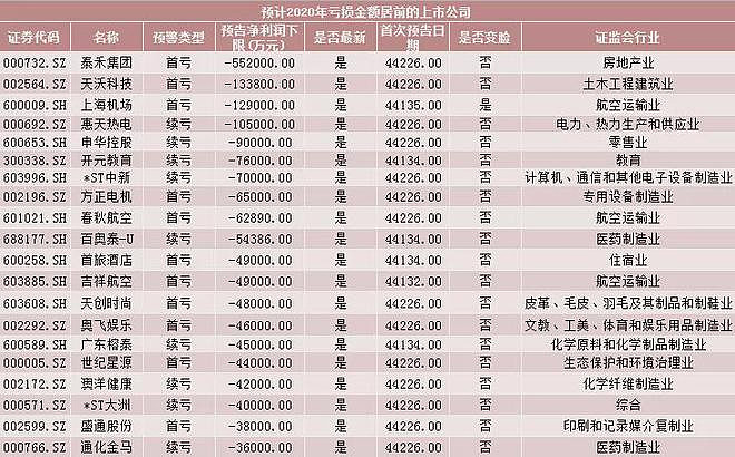 据中国证券报梳理,巨亏的上市公司中,主要扎堆在航空运输业、房地产建筑业、餐饮旅游业、生态保护和环境治理业等四大行业。受疫情期间开工率、客流量骤减等因素影响,这些行业成为亏损公司中,较为“扎眼”的存在。