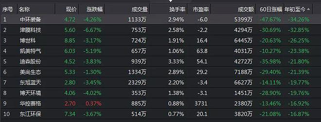 值得一提的是,受业绩亏损、现金流不佳等因素影响,生态保护和环境治理类公司也成为今年以来跌幅居前的板块,美尚生态、博天环境等公司近期股价已接近或已经创下上市以来最低。