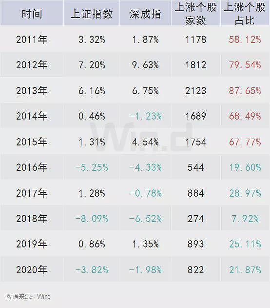 个股表现差异极大,2011年至2015年这5年间春节前10个交易日表现较好,个股基本普涨,上涨家数占比均超过50%,甚至达到80%以上。但最近5年春节前个股表现不尽人意,分化严重,尽管有些年指数仍上涨,但个股是普遍下跌,整体上涨比例不到30%,下跌较多。而今年市场目前仍然是分化严重,可见2021年节前指数或问题不大,但个股上涨比例仍可能不高,需要重视。