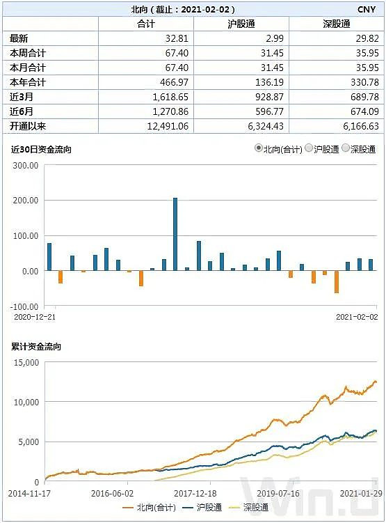 Wind数据显示,北上资金当日净买入32.81亿元,已连续3个交易日净买入,2021年以来累计净买入467亿元。