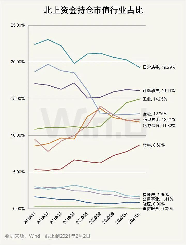 北上资金加仓工业、材料