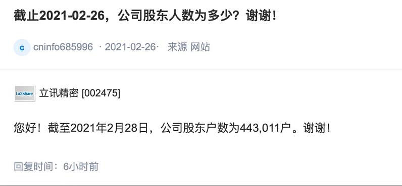 如立讯精密的最新股东户数已达44.3万户,较去年底增加约12万户,增幅27%。