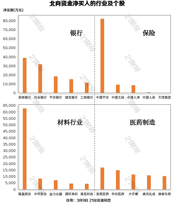 据21投资通智能监测,3月9日,北向资金净买入24.31亿元,其中沪股通净买入15.85亿元,深股通净买入8.46亿元。越声理财表示,北向资金早盘与股指走势出现了明显的背离,在股指开盘后急跌的时候,北资是逆市吸筹,一度净流入58亿元;但在股指快速反抽的时候,反而呈现净流出。