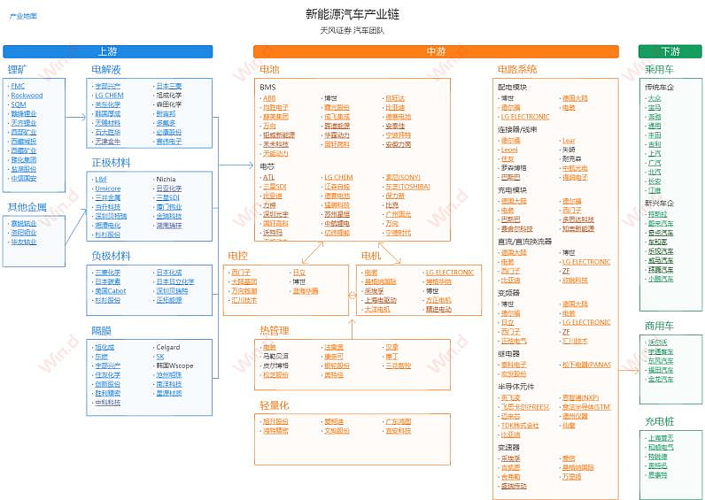 据Wind产业链平台,新能源汽车产业链图谱如下: