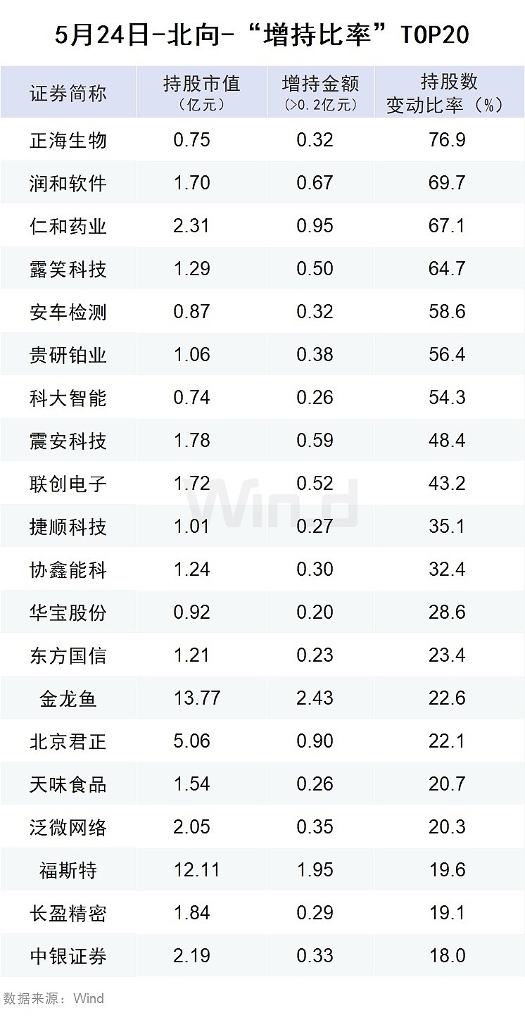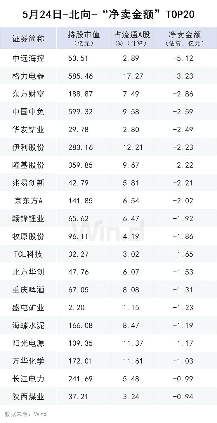 根据港交所公布的最新2218只沪深港通标的持股情况, 5月24日,北向资金买入451.2亿元,卖出432.3亿元,总体净买入18.9亿元。截至当日收盘,北向资金总持仓市值约25020.6亿元。
