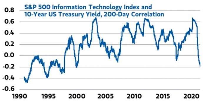 具体来看,摩根士丹利财富管理业务首席投资官Lisa Shalett在本周的一份报告中指出,飙升的科技股与美国国债收益率之间的关系已经破裂,与“互联网泡沫时期科技股估值失控时的极端反常现象”相呼应。