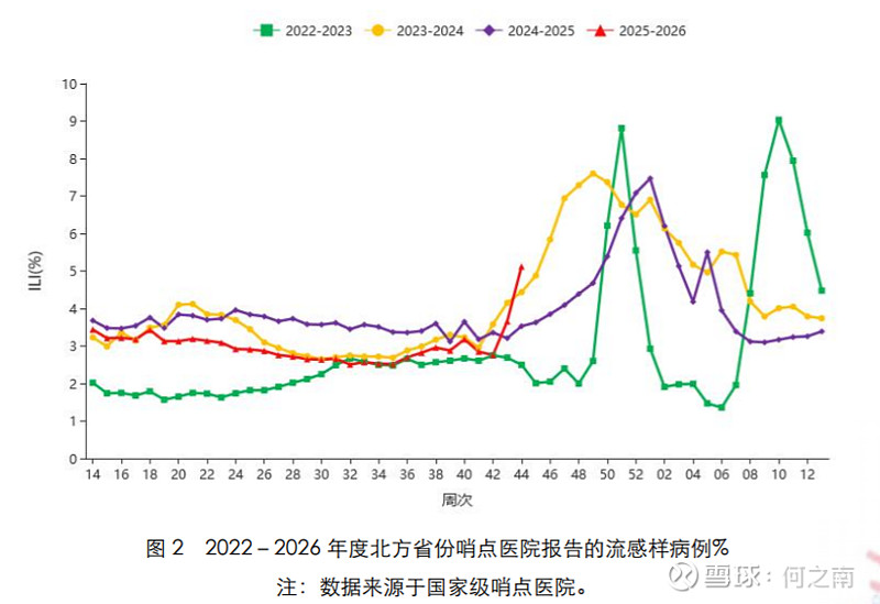 也就是说今年北方的的流感病例已经超过了2022、2023、2024这三年,达到了最近几年的最高水平。