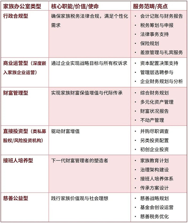 (2)家族办公室核心职能是投资组合管理和直接投资