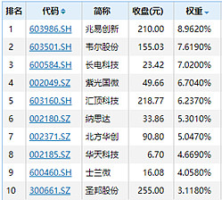 国联安的半导体ETF跟踪的是中证全指半导体产品与设备指数,该指数目前成分股共30只,选股范围涵盖了半导体行业里上游的材料、中游的设计/制造/封测等工艺,以及下游终端产品等整个产业链,其中前五大权重股占比39.19%,前十大权重股占比61.66%,权重集中度相对更高。