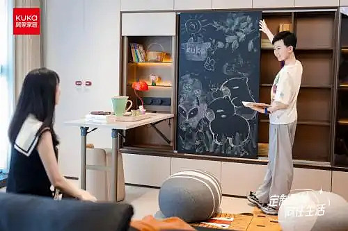 再比如家庭图书馆这一微场景,顾家家居采用去客厅化大书桌作为核心设计,搭配电力轨道、洞洞板、可推拉黑板等巧妙设计,为孩子营造出一个沉浸式的学习天地。同时,创意手工角、荣誉展示柜等功能区域的设置,不仅极大地激发了孩子的学习兴趣,更为整个家庭增添了浓厚的文化氛围。在这里,家长能够与孩子一同沉浸于阅读与学习之中,共同书写成长的美好篇章,家庭图书馆真正成为全家人的精神加油站,承载着知识传承与情感交流的重要使命。