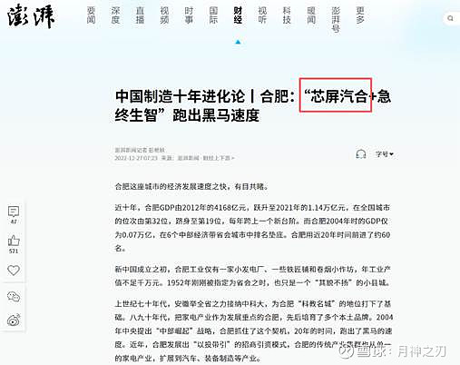 合肥的制造业尤其亮眼,“芯屏汽合”(音同心平气和)、“急终生智”(音同急中生智),备受关注。