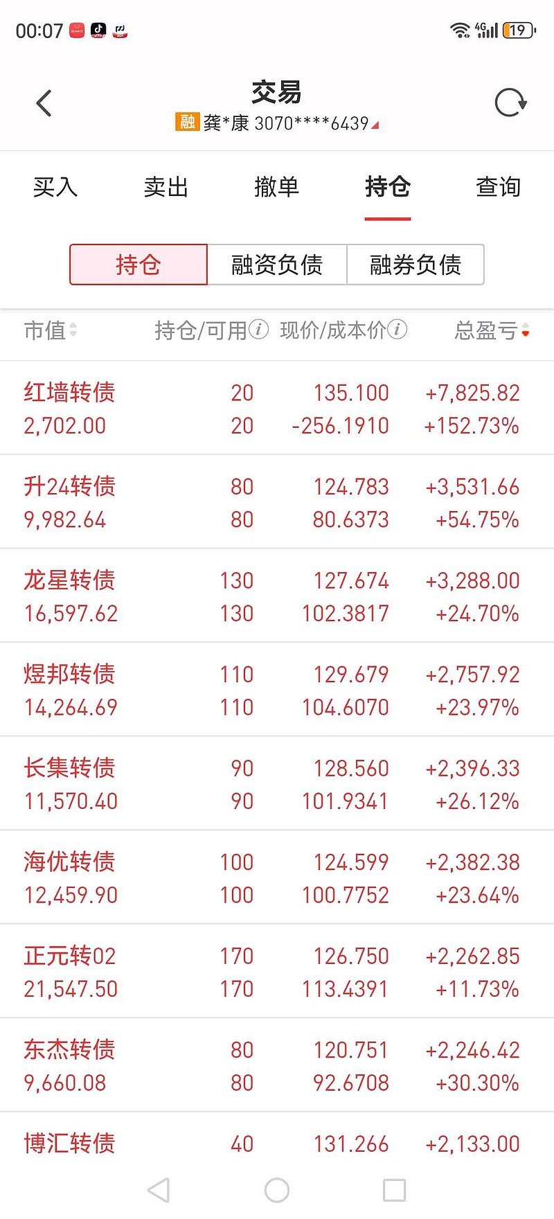 今天发生了一件有意思的事情,本人这个账户,持有约100个债券,基本执行卖掉冲高的债券,买入新债券或者持仓中跌幅较大的可转债,同时避免过于集中持有单个可转债。如此循环半年多,今天出现了消灭了绿色(亏损)债个人没有卖出过亏损债。