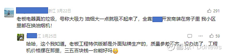 以工程渠道为例,海信中央空调之所以后台给到经销商较高的返点,正是中央空调市场和工程渠道绑定较深,经销商需同时承担给到工程渠道的返点成本和日常客情维护成本。厨电行业进入工程渠道同理,但在扣除来自工程渠道“硬性成本”后,老板烟机、灶具仍能保持高毛利率,又是如何做到的呢?这正是社交媒体平台网友对老板工程机不满的原因。这种不满对老板品牌构成伤害的同时,直接影响区域经销商出货量。