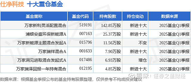 根据2025基金Q1季报公募基金重仓股数据,重仓该股的公募基金共6家,其中持有数量最多的公募基金为万家基金的万家新利灵活配置混合。万家新利灵活配置混合目前规模为7.58亿元,最新净值1.649(7月7日),较上一交易日上涨0.21%,近一年下跌19.25%。该公募基金现任基金经理为黄海。黄海在任的基金产品包括:万家精选混合A,管理时间为2020年9月23日至今,期间收益率为35.51%;万家宏观择时多策略混合A,管理时间为2020年9月23日至今,期间收益率为32.48%。