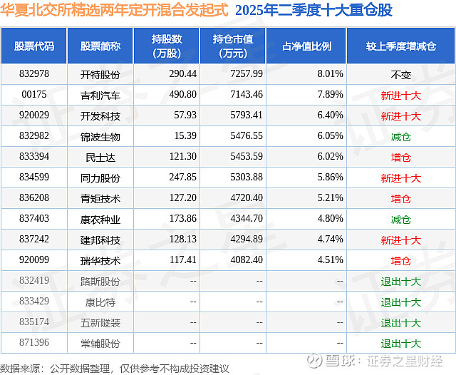 重仓开特股份的公募基金请见下表: