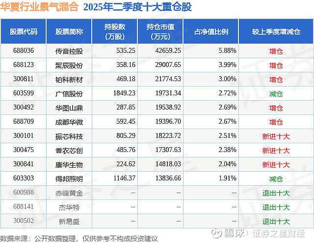 根据2025基金半年报公募基金重仓股数据,重仓该股的公募基金共2家,其中持有数量最多的公募基金为华夏基金的华夏行业景气混合。华夏行业景气混合目前规模为72.61亿元,最新净值4.4144(9月10日),较上一交易日上涨1.66%,近一年上涨92.97%。该公募基金现任基金经理为钟帅。钟帅在任的基金产品包括:华夏远见成长一年持有混合A,管理时间为2022年9月20日至今,期间收益率为25.74%;华夏招鑫鸿瑞混合A,管理时间为2024年1月16日至今,期间收益率为91.96%;华夏卓越成长混合A,管理时间为2025年8月12日至今,期间收益率为3.73%。