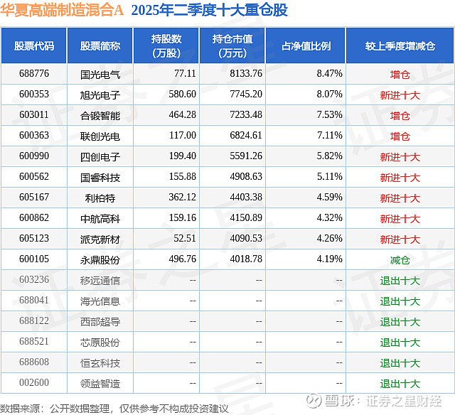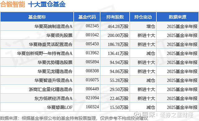 根据2025基金半年报公募基金重仓股数据,重仓该股的公募基金共10家,其中持有数量最多的公募基金为华夏基金的华夏高端制造混合A。华夏高端制造混合A目前规模为8.99亿元,最新净值1.547(9月25日),较上一交易日上涨0.26%,近一年上涨46.22%。该公募基金现任基金经理为吴昊。