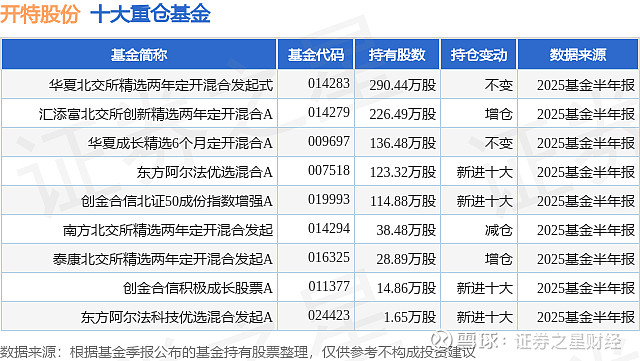 重仓开特股份的公募基金请见下表: