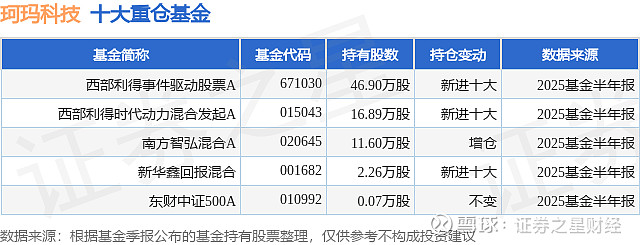 重仓珂玛科技的公募基金请见下表:
