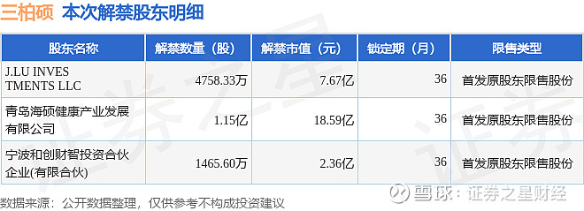 证券之星消息,根据市场公开信息整理,三柏硕(001300)于10月20日将有1.78亿股限售股份解禁,为公司首发原股东限售股份,占公司总股本72.84%。(本次数据根据历史公告整理得出,实际情况以上市公司最新公告为准)本次解禁后,公司已无限售股份。具体如下图所示: