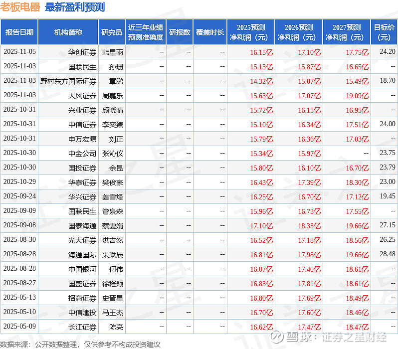 最新盈利预测明细如下: