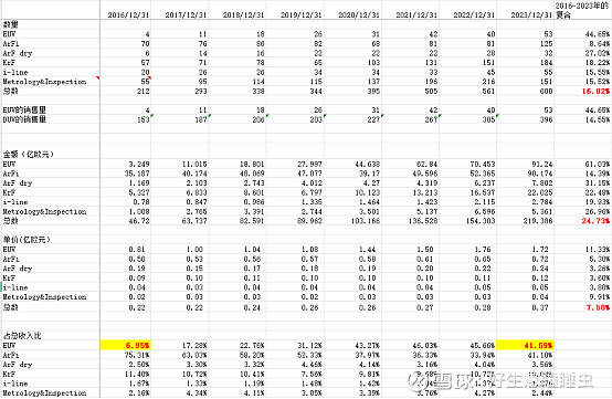 b)软件收入:光刻机的维护和升级:平均占比25%左右,2016-2023年复合增速14.7%;