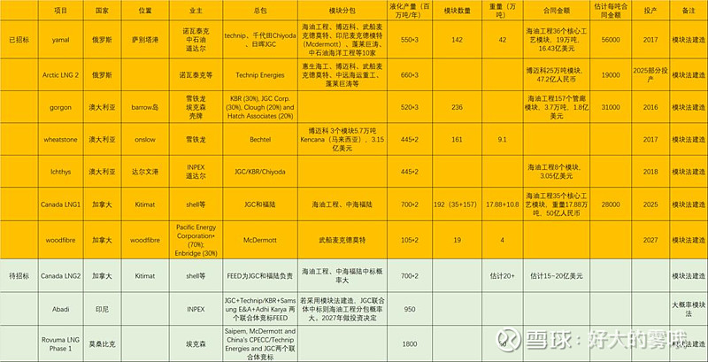 (4)行业景气度对合同金额和毛利润等影响很大,同样建造核心工艺模块,亚马尔项目的平均每吨合同金额是加拿大壳牌LNG项目的两倍;