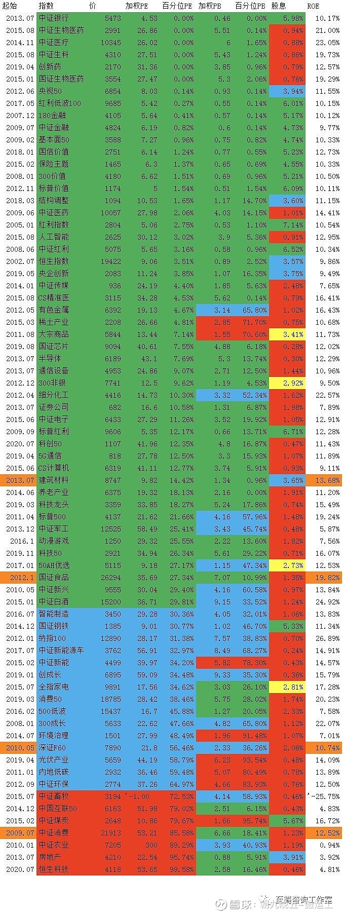 主要参考每天的估值表,选择近3年估值最低的指数基金来定投,与高股息不同的是加入的ROE指标,增长要高。