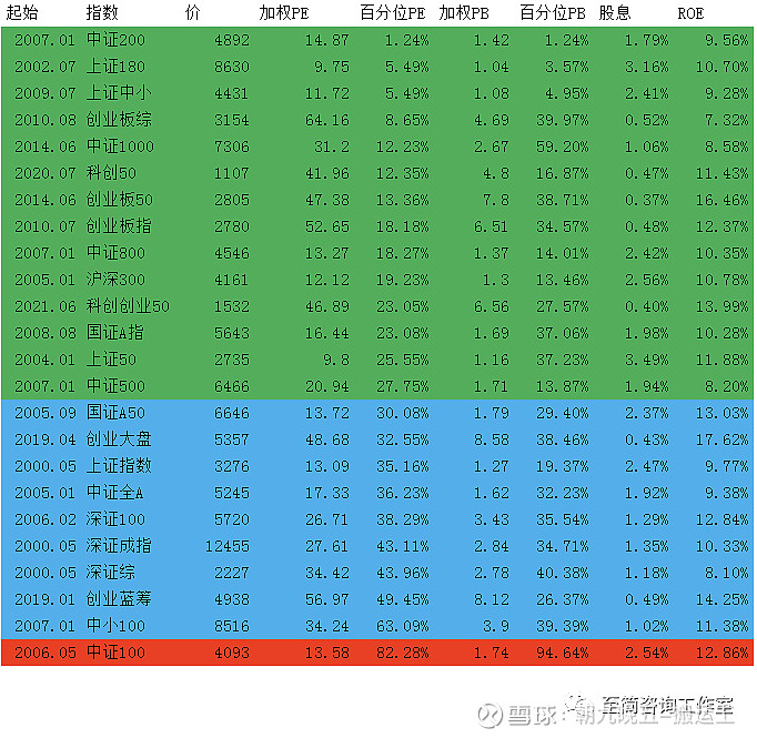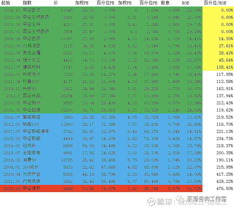 投资原则为绿色低估买入 蓝色适中持有 红色高估卖出