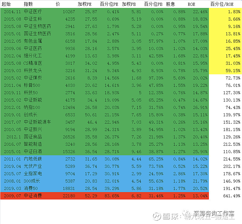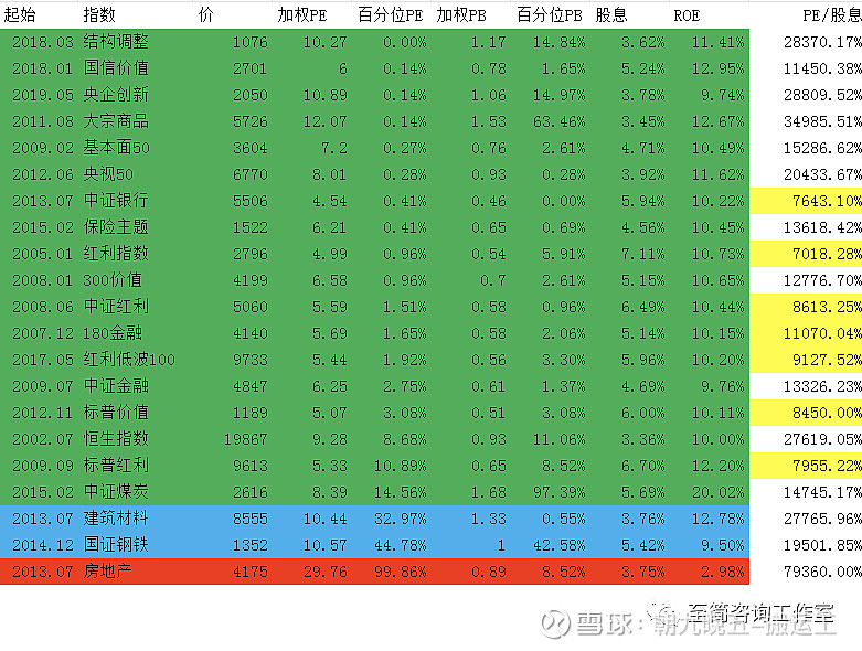 投资原则为绿色低估买入 蓝色适中持有 红色高估卖出