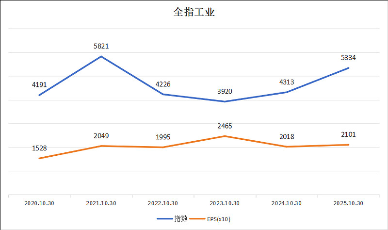 全指工业:近几年指数向上,EPS向下,涨的是PE