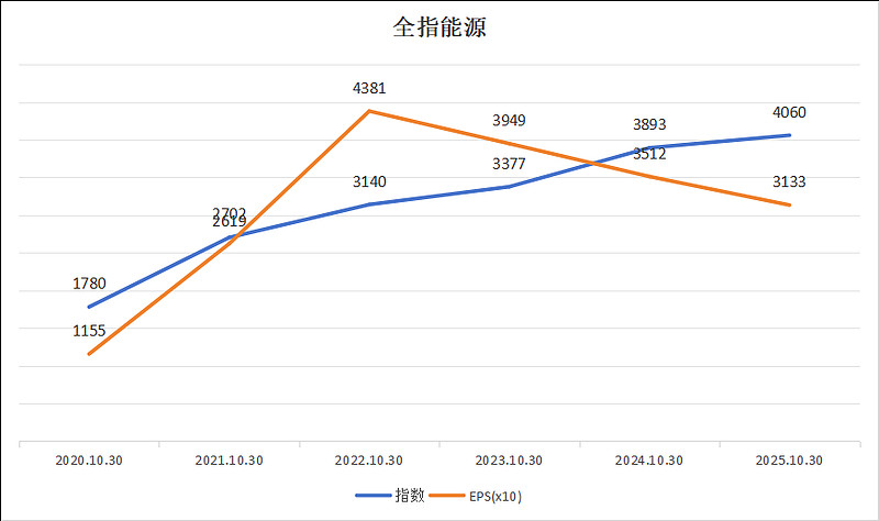 全指能源:近几年指数向上,EPS向下,涨的是PE