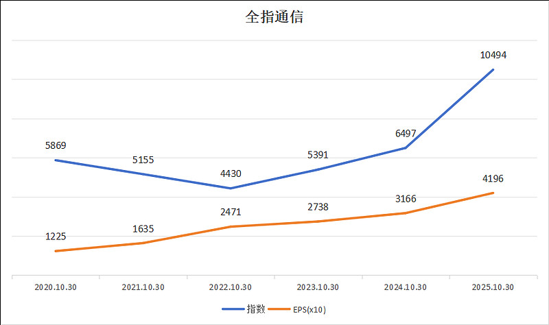 全指通信(因全收益数据缺失,采用非全收益数据):牛市热门之一,EPS是真好,但最近一年有些过于夸大了