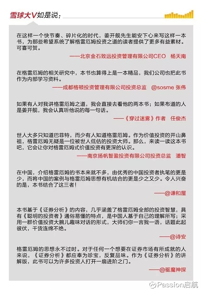 姜开舰(雪球ID:Passion启航)本杰明·格雷厄姆的忠实追随者,对格雷厄姆的投资理念有深入研究,同时,多年来一直在港股、A股、B股等多个市场实践格雷厄姆式价值投资。曾供职于上海一家投研机构和一家大型对冲基金,目前为独立投资人。
